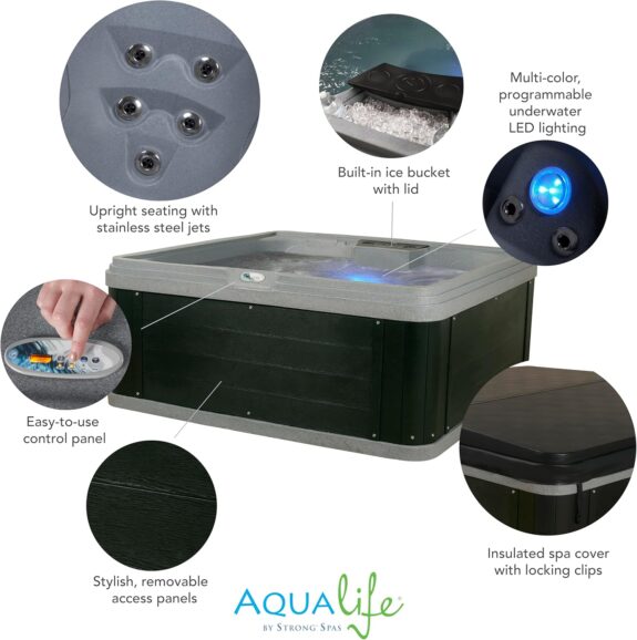 Ariana 6-Person Bench-Style Spa with Built-In Ice Bucket, 30 Jets, 70 Ports, and Cover