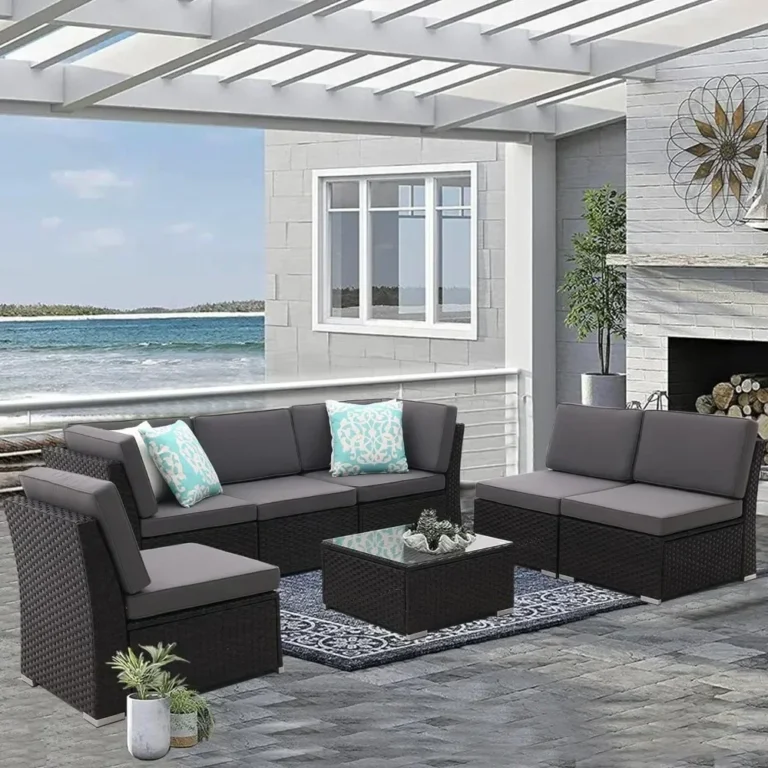 7 Piece Outdoor Furniture Set with Propane Fire Pit Table & Waterproof Cover
